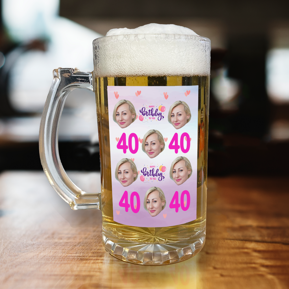Simply upload the photo & enter the desired age for your beer stein cup in the boxes provided below.