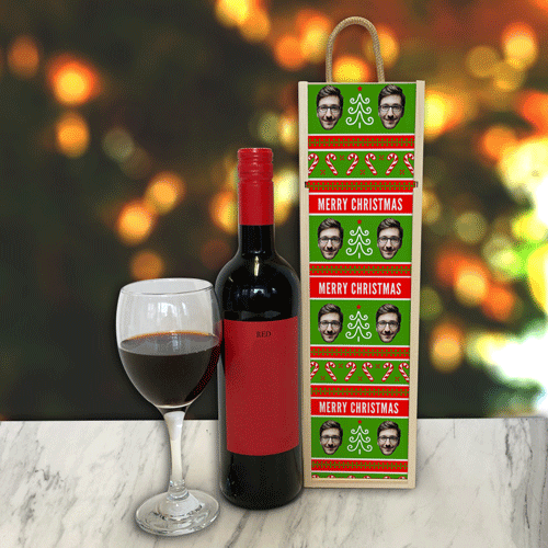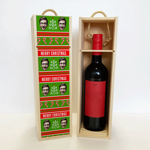 Personalised Wine Box Merry Christmas Red & Green Photo Upload