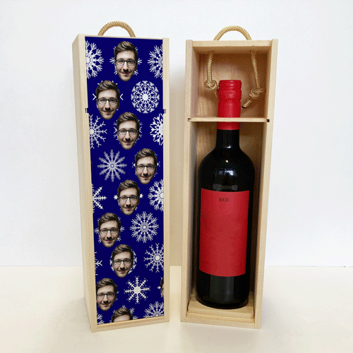 Personalised Wine Box Snowflakes Photo Upload