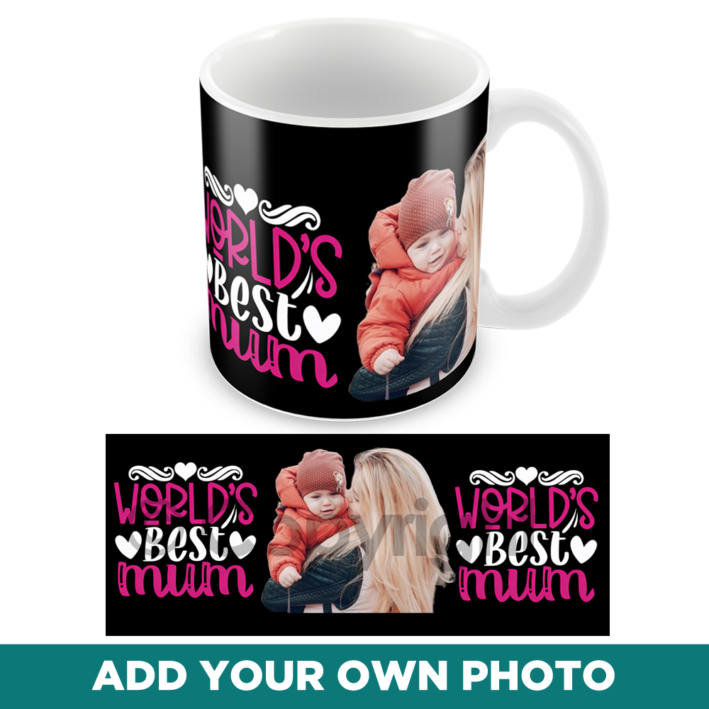 World’s Best Mum Personalised Photo Mug Black Background Mothers Day Mug